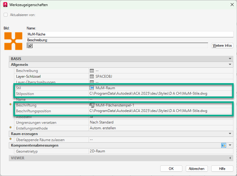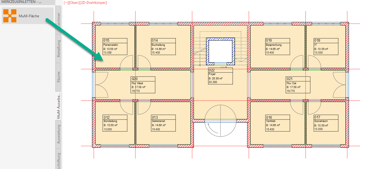Um deinen bürospezifischen Raumstil inkl. eigenen Flächenstempel in unterschiedlichen Projektdateien verwenden zu können, kannst du ein neues Werkzeug (auf einer eigenen Werkzeugpalette) erstellen.