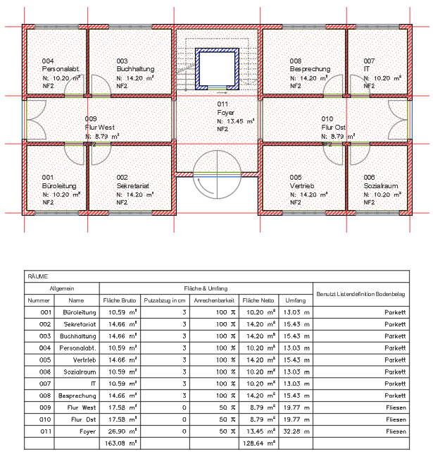 Bei Bedarf die Darstellung (Schraffur, Farben, …) für Plan 1-100, Plan 1-50, … anpassen.