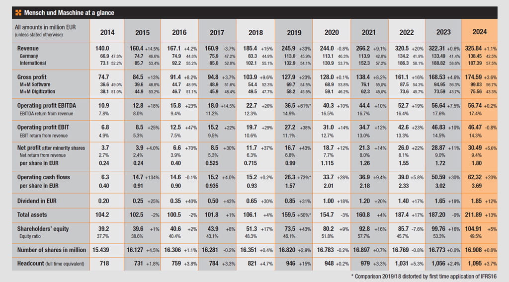 The company was founded in 1984, is headquartered in Wessling near Munich, employs approx. 1,200 people and achieved EUR 325.8 mln sales in 2024. The M+M share is listed in Frankfurt (scale30) and Munich (m:access).
