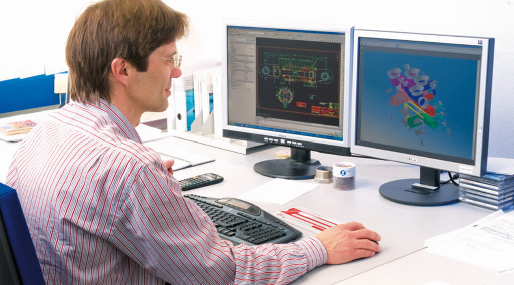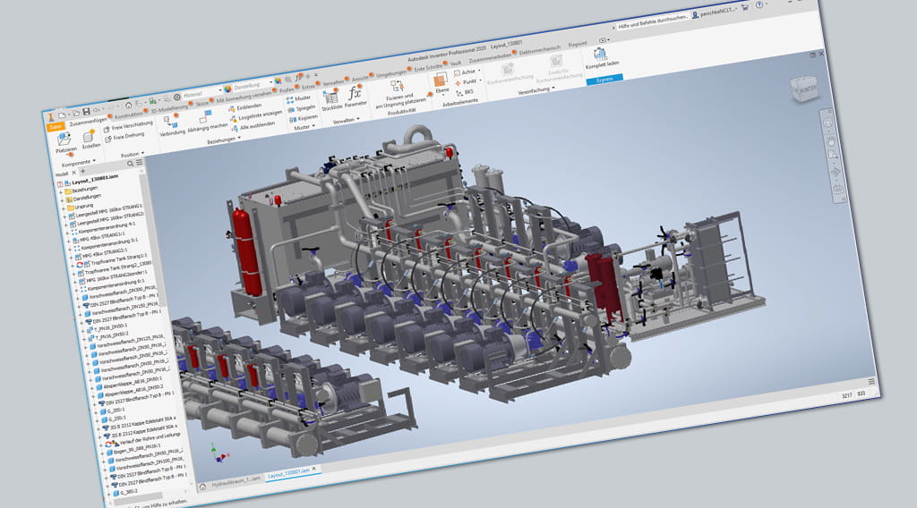 das 3D-CAD-System Autodesk Inventor erlauben schnelles Konstruieren und die frühe anschauliche Darstellung der Aggregate und Anlagen. Auf Bauteile, die für ein Projekt entwickelt wurden, greifen die